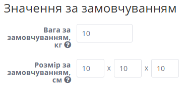 В службах доставки Укрпочта, Meest, Rozetka Delivery вы можете указать вес и размеры по умолчанию: