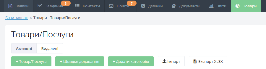 В результате, у менеджера появится в верхнем меню пункт "Товары":