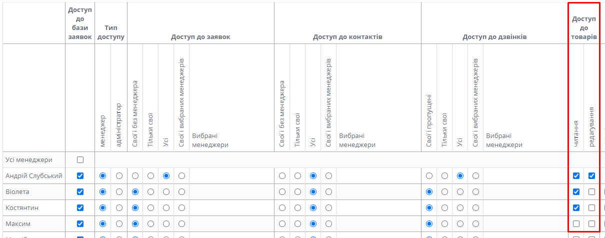 Для менеджеров - можно разрешить доступ чтения или редактирования товаров:
