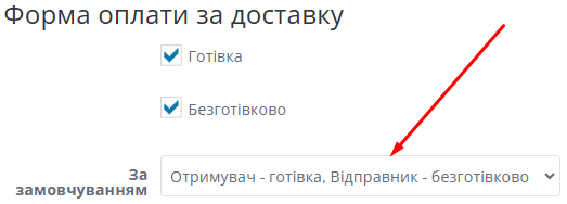 В настройках Новой Почты можно выбрать форму оплаты по умолчанию: