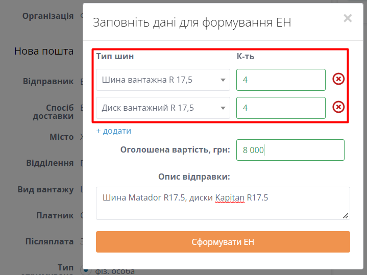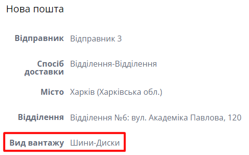 В SalesDrive появилась возможность формировать ТТН Новой Почты с типом отправки "Шины-диски".