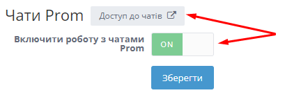 - Включите работу с чатами Prom и нажмите "Сохранить"