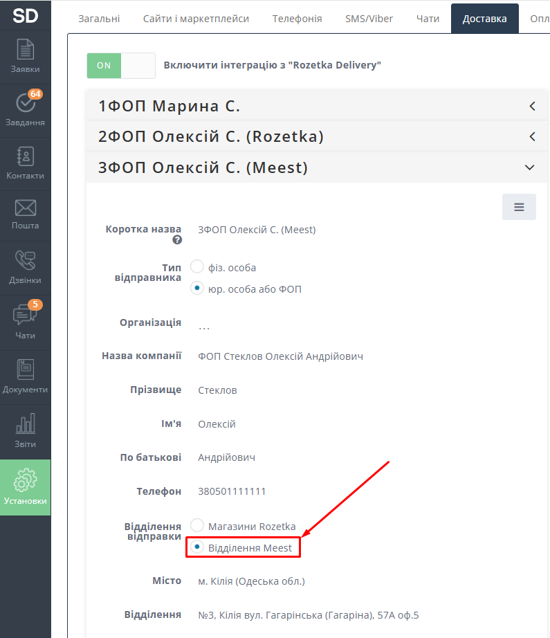В поле "Отделение отправки" выберите "Отделение Meest":