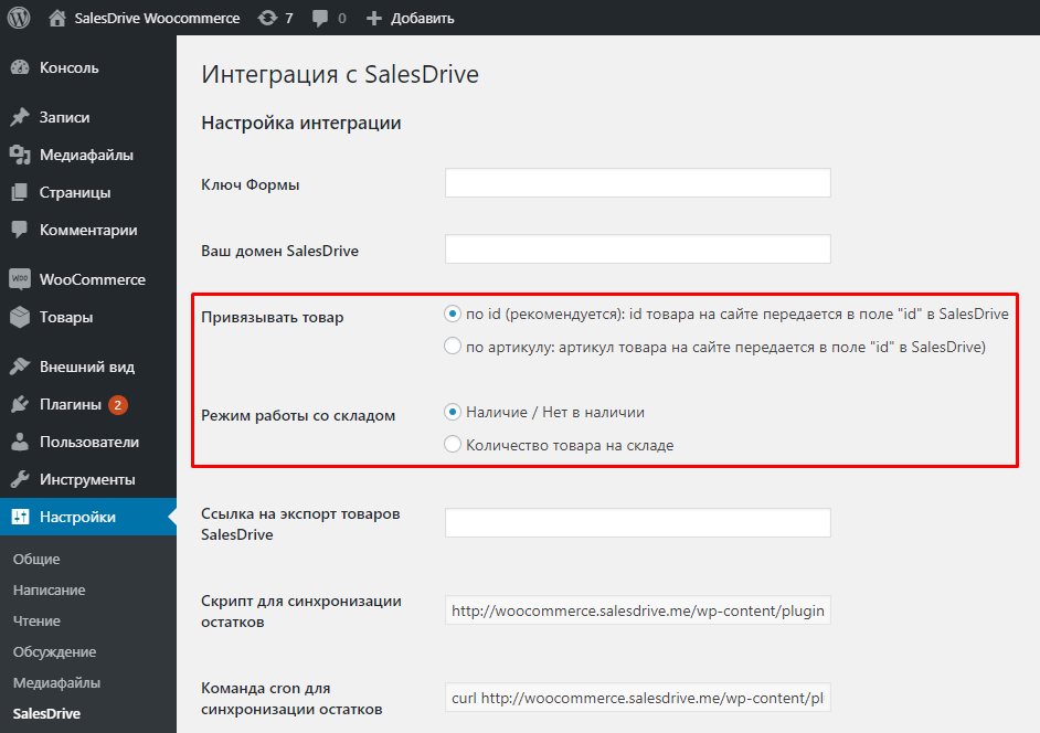 В модуле интеграции Woocommerce (WordPress) - добавили настройки: